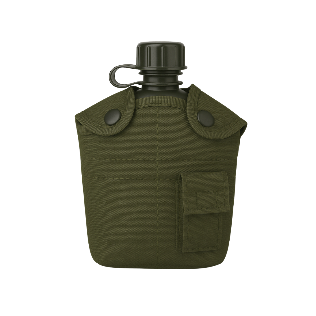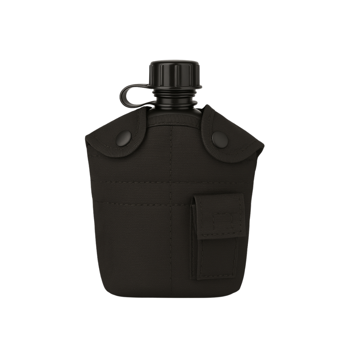 The secure button-flap design protects the canteen during intense movement, while the compact profile fits easily onto belts, backpacks, or tactical vests.