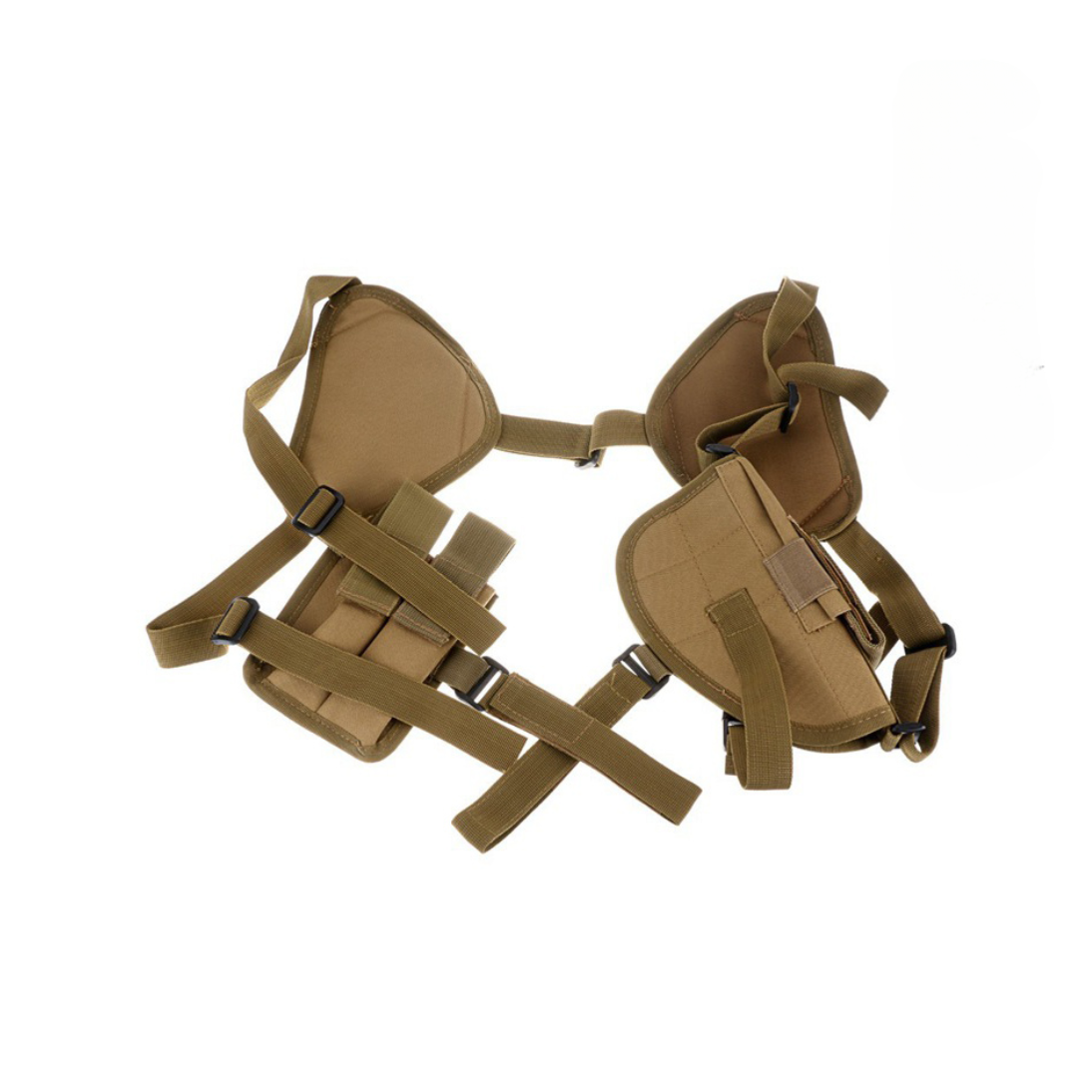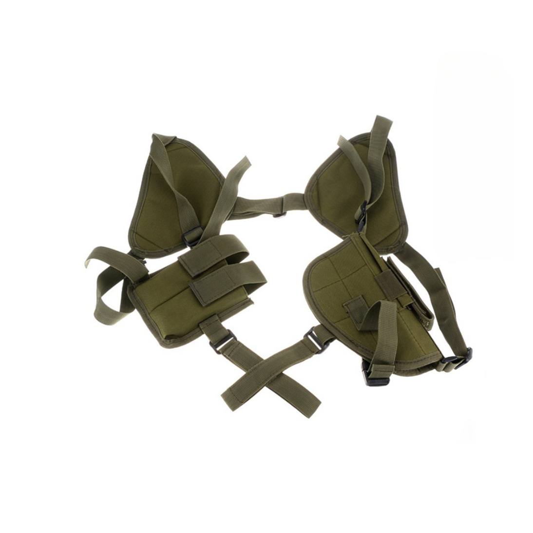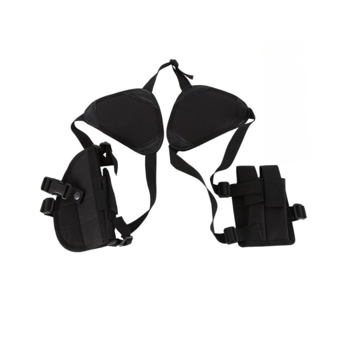 Experience reliable and accessible sidearm carry with our Outdoor Tactical Shoulder Gun Holster. Designed for outdoor combat, military ops, or shooting range sessions, this ambidextrous shoulder rig balances comfort and performance. Constructed from high-density waterproof nylon, it offers tactical durability in all conditions. One side features a secure pistol holster with button closure, while the other includes a magazine pouch for quick reloads. Adjustable triangular shoulder pads evenly distribute weight, ensuring maximum comfort for long durations.